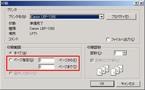 private void button1_Click(object sender, System.EventArgs e) { System.Drawing.Printing.PrinterSettings ps = new System.Drawing.Printing.PrinterSettings(); //プリンターの設定をする printDialog1.PrinterSettings = ps; //[ページ指定]を有効にする printDialog1.AllowSomePages = true; //ダイアログを表示する if ( printDialog1.ShowDialog() == DialogResult.OK ) { //ここに印刷処理を記述 } }