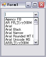 インストール済みフォントをコンボボックスのアイテムにするサンプルを紹介します。