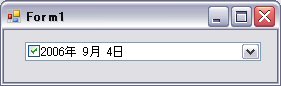 private void Form1_Load(object sender, EventArgs e) { //コントロールの左側にチェックボックスを表示します dateTimePicker1.ShowCheckBox = true; }