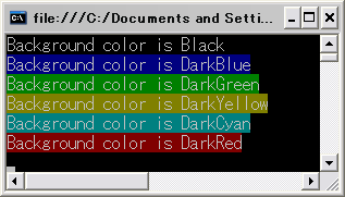 Console.WriteLine("Background color is DarkRed");