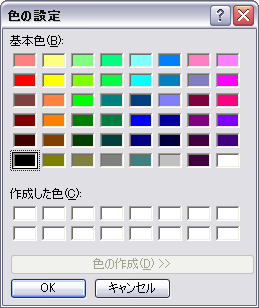 通常カラーダイアログは、初期値で[色の作成]ボタンが有効になっています。これを無効にするにはAllowFullOpenプロパティをFalseにします。