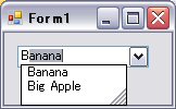 Private Sub Form1_Load(ByVal sender As System.Object, ByVal e As System.EventArgs) Handles MyBase.Load Dim strData() As String = {"Apple", "Banana", "Big Apple", "Candy", "Drink", "Elephatnt", "Fruit"} 'コンボボックスにアイテムを追加 ComboBox1.Items.AddRange(strData) 'オートコンプリートモードの設定 ComboBox1.AutoCompleteMode = AutoCompleteMode.SuggestAppend 'コンボボックスのアイテムをオートコンプリートの選択候補とする ComboBox1.AutoCompleteSource = AutoCompleteSource.ListItems End Sub