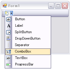 また、コードでToolStripにボタンを追加するにはToolStripComboBoxクラスを使用します。
